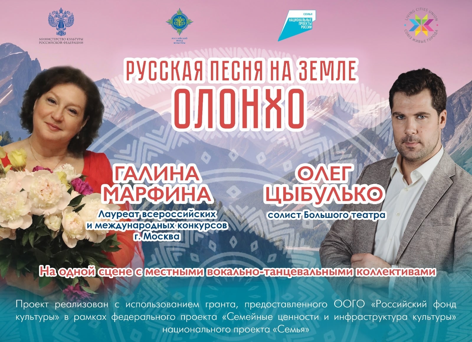 Огромное спасибо, федеральному проекту «Семейные ценности и инфраструктура культуры», национального проекта «Семья». Ура! Якутским зрителям и замечательным московским артистам: солисту Большого театра Олегу Цыбулько и лауреату Всероссийских и международных конкурсов Галине Марфиной.